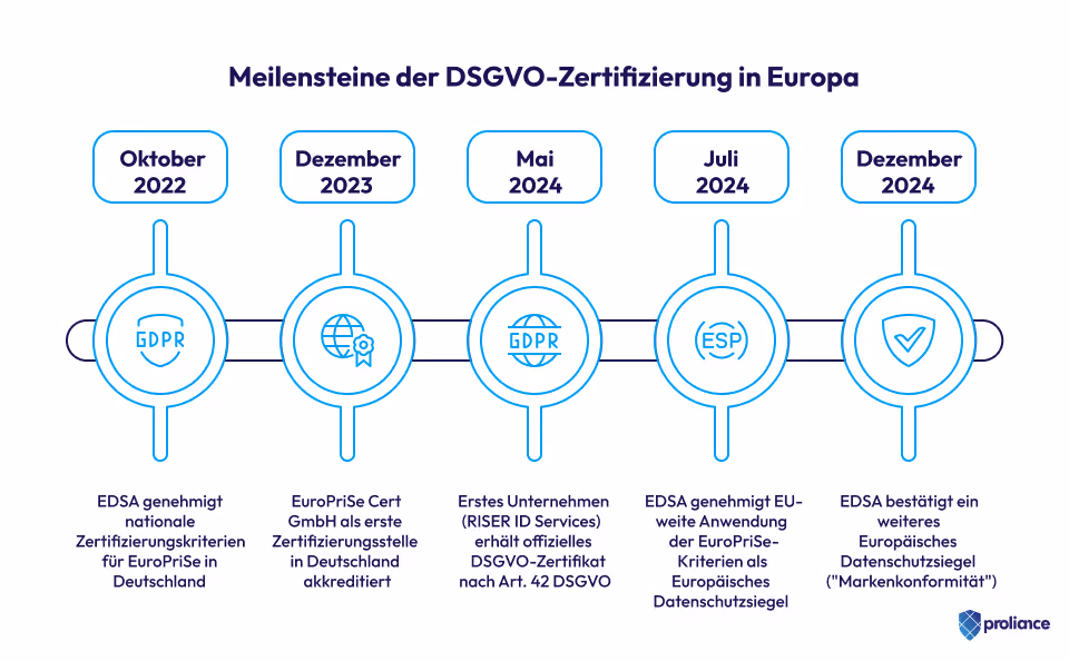 - EuroPriSe ist seit Dezember 2023 als akkreditierte Zertifizierungsstelle aktiv und vergibt die ersten DSGVO-Zertifikate nach Art. 42 DSGVO.