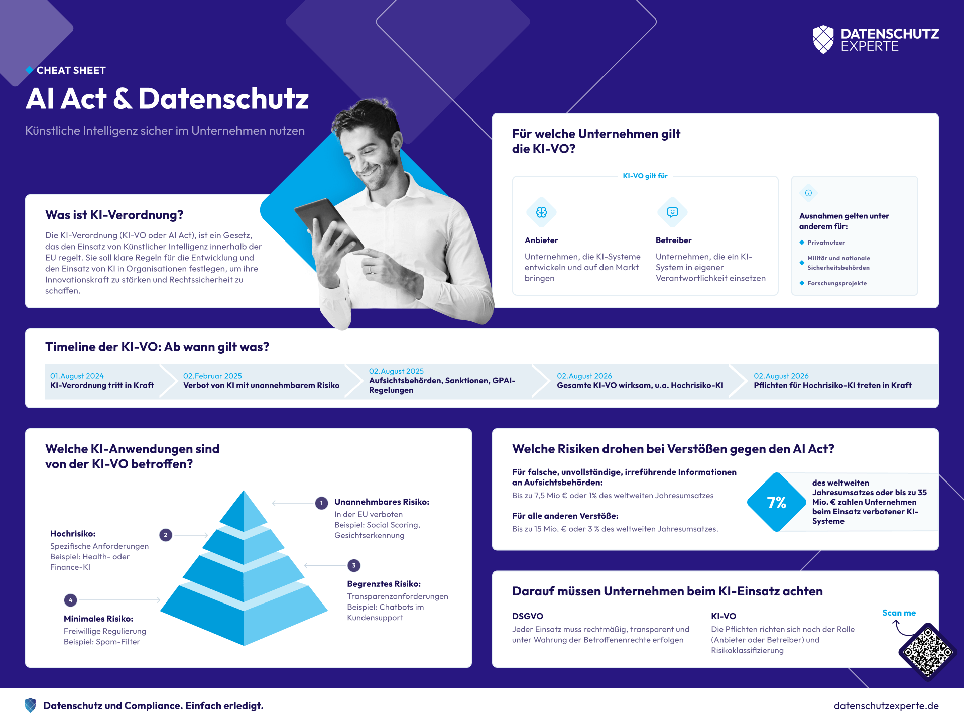 Mit Unterstützung von KI-Systemen können Unternehmen große Mengen an Daten analysieren und daraus wertvolle Erkenntnisse für Business-Entscheidungen ableiten. Der Einsatz von KI bietet dadurch enorme Vorteile für die Effizienz und Wettbewerbsfähigkeit von Unternehmen. Allerdings birgt die Technologie auch erhebliche Risiken, insbesondere wenn es um die Verarbeitung personenbezogener Daten geht.